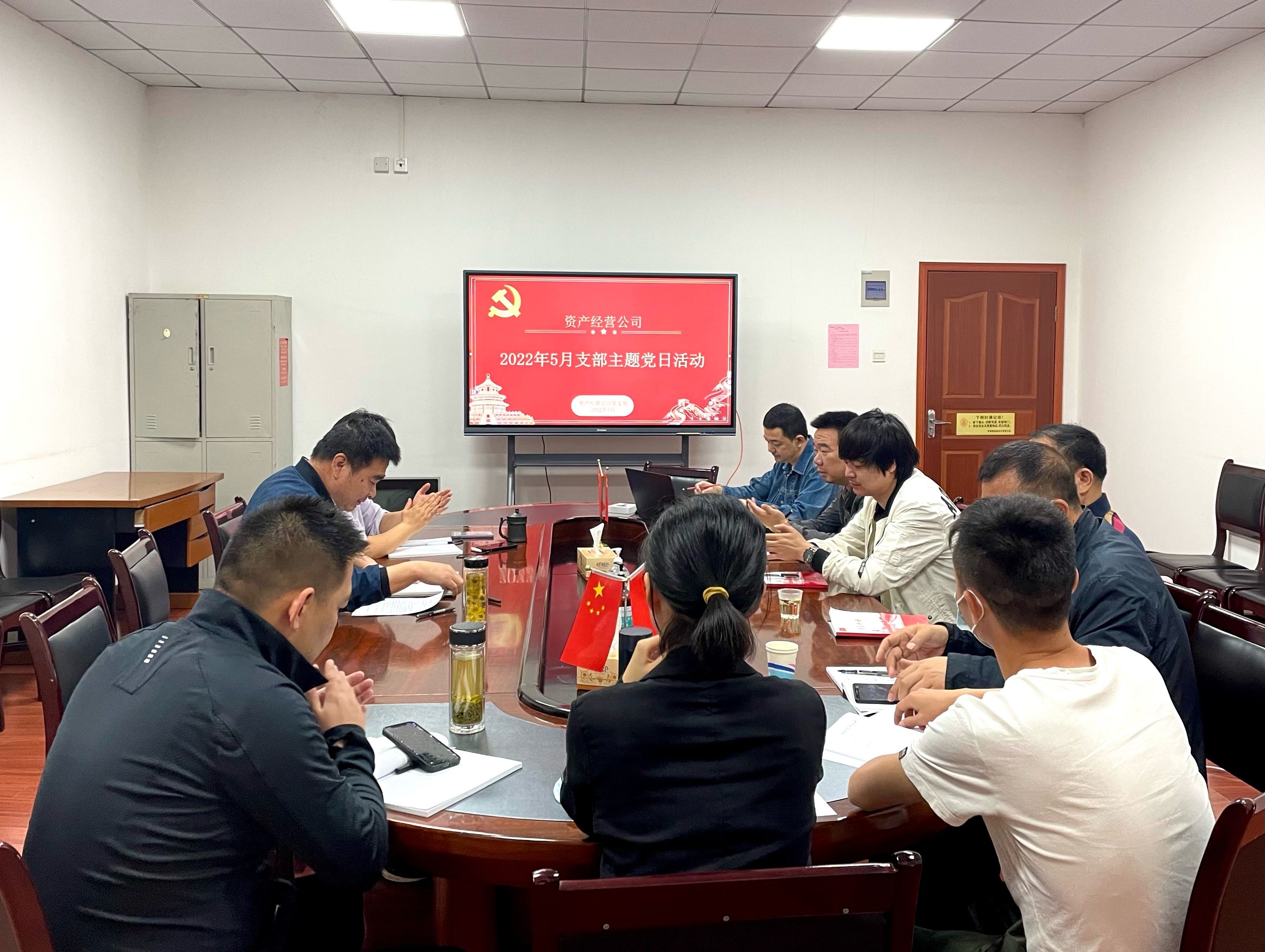 2022年5月12日上午,按照学校党委统一部署,资产经营公司党支部组织全体党员和入党积极分子在公司会议室集中开展了5月份支部主题党日活动。会议由党支部书记、总经理尹进涛主持。