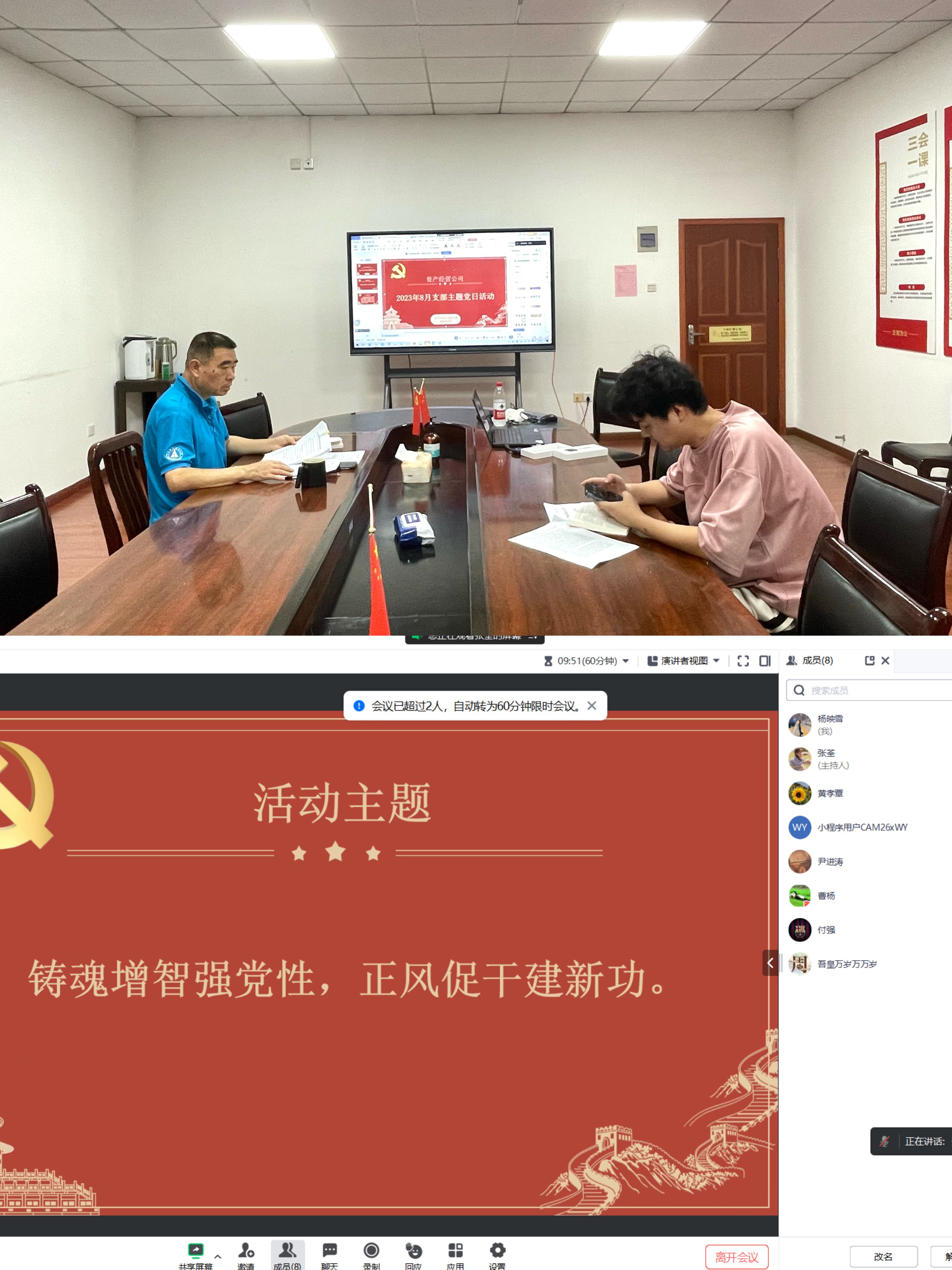 为持续推动学习贯彻习近平新时代中国特色社会主义思想主题教育走深走实,激励全体党员在“学思想、强党性、重实践、建新功”中走前列、勇争先,资产经营公司于8月7日上午组织全体党员及发展对象以线上线下相结合的方式开展了主题教育第四期“读·讲·行”主题党日活动。会议由公司党支部书记、总经理尹进涛主持。