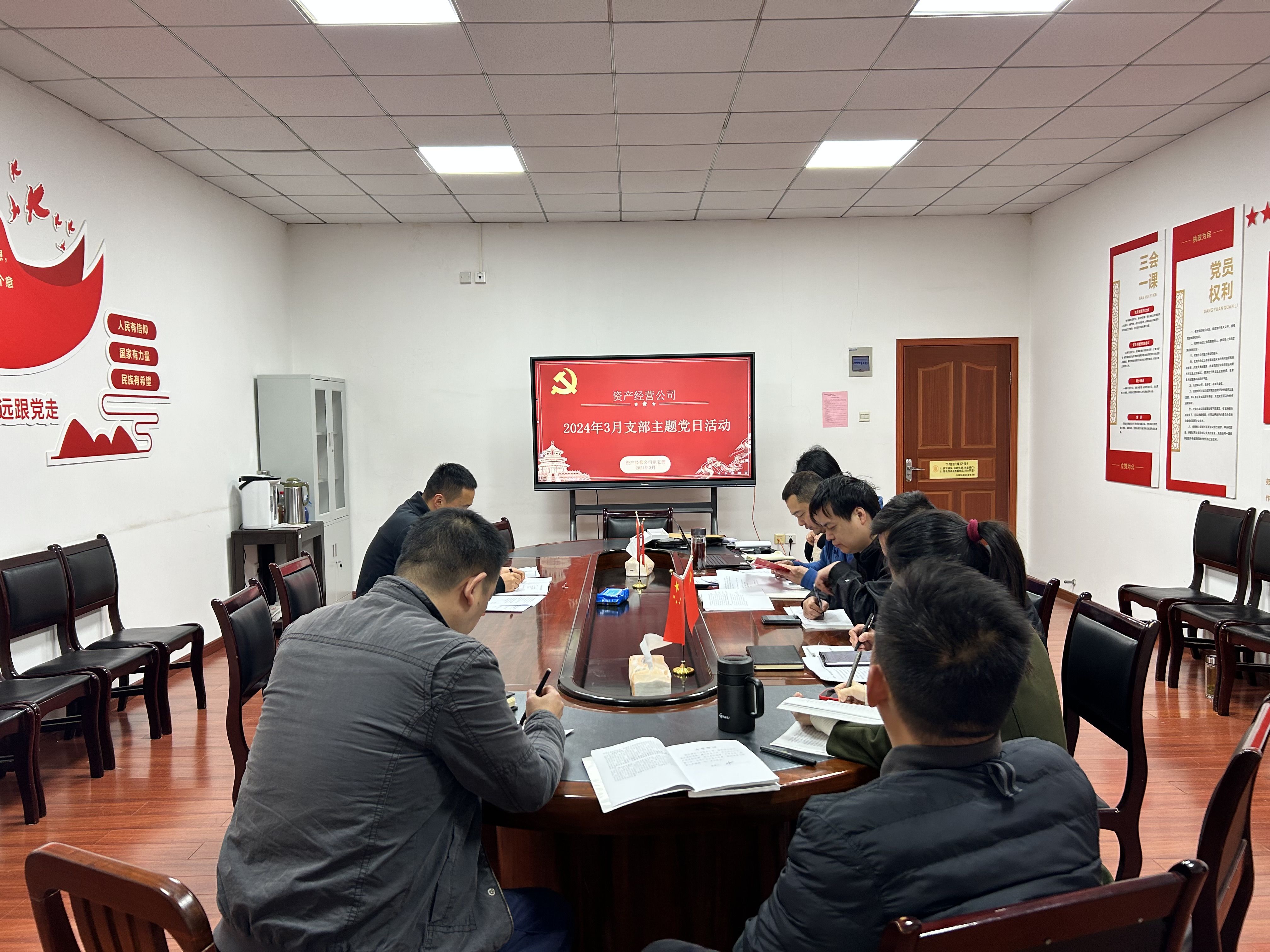 为深入学习贯彻习近平新时代中国特色社会主义思想,教育引导全体党员对党忠诚、为党尽责,锐意进取、苦干实干,2024年3月26日下午,按照学校党委统一部署,资产经营公司党支部组织开展了3月份支部主题党日活动。会议由副总经理李沛主持。