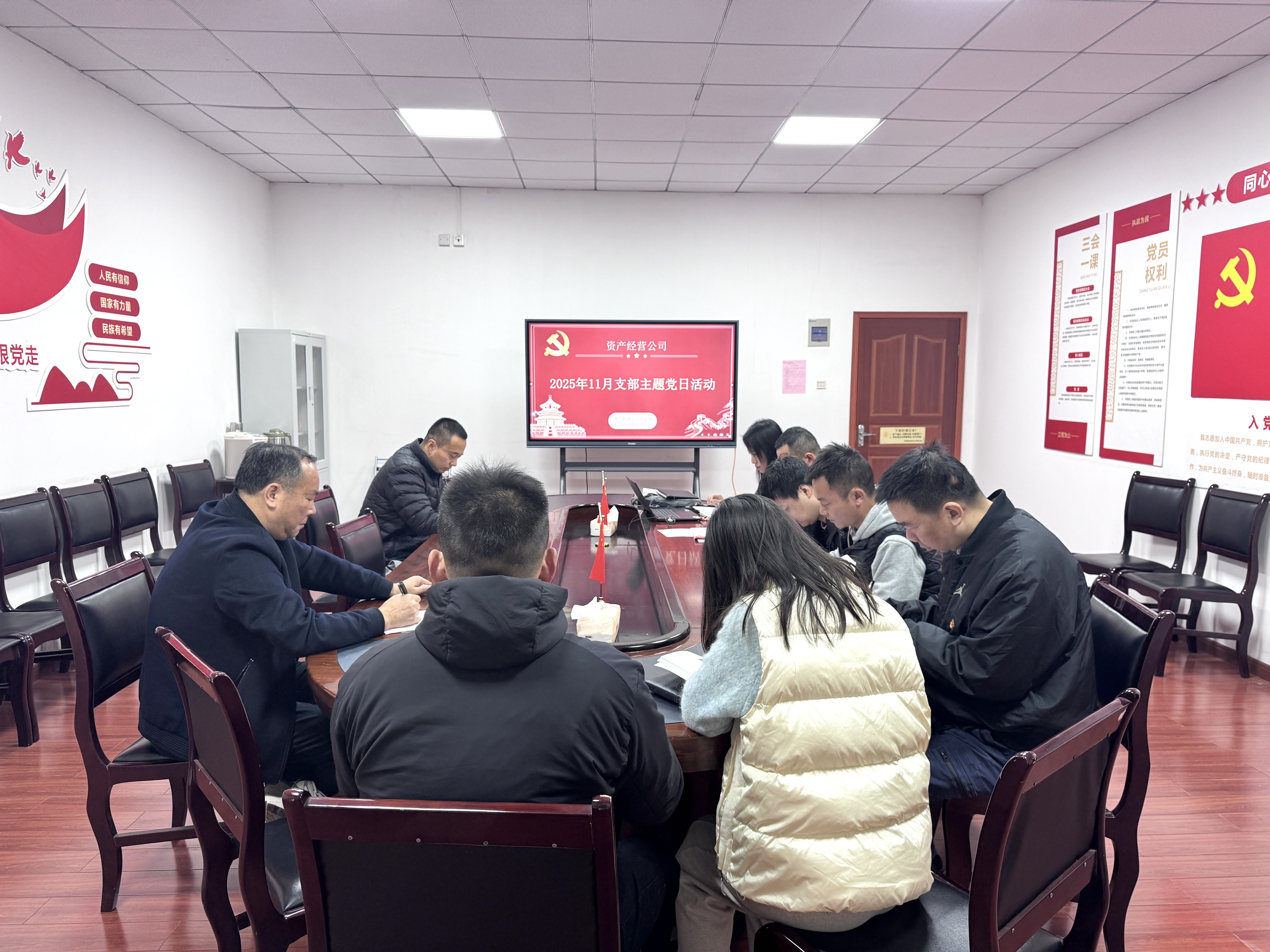 为深入学习贯彻党的二十届四中全会精神,教育引导党员干部勇于担当、主动作为,11月21日上午,资产经营公司党支部组织开展了11月份支部主题党日活动,会议由公司副总经理李沛主持。