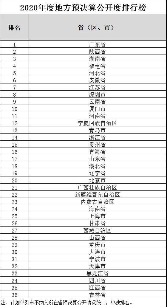 三、坚持“三个”导向,不断深入推进预决算公开工作为科学、客观、全面评价各地预决算公开情况,财政部根据检查情况对各地进行综合打分,形成了“2019年度地方预决算公开度排行榜”和“2020年度地方预决算公开度排行榜”,向社会公开。