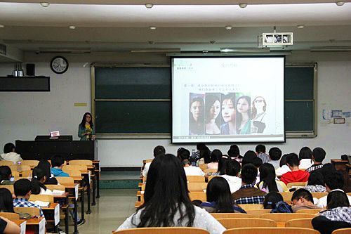 (院新闻中心记者 苏茜 刘家瑶 编辑 翁雪柔 文可晶 摄影 吉源)由外国语学院主办,中韩国际教育学院、财政税务学院、刑事司法学院、经济学院联合协办的“五院青年马克思主义素质拓展培训”于2014年4月9日19点在文波楼305教室开课。本次培训课程由我校就业指导中心的兰玉娟老师主讲, 主题是“接近职业梦想,职业生涯规划实战”。外语、中韩、财税、刑司、经济五个学院2012级的众多学生参加了这次培训。
