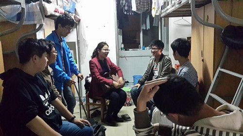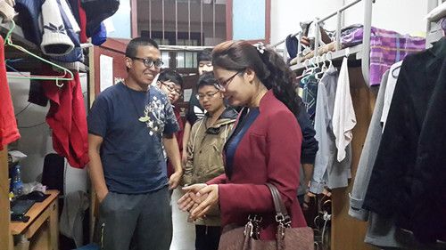 紧接着,消防安全小分队一行人来到临湖1栋对2013级男生寝室进行安全检查。在看到很多男同学在玩游戏时,杨老师坐下来与同学们强调学习的重要性,并督促大家要以学习为重,呼吁大家在学习的同时牢记消防安全知识,把人身安全放在第一位。