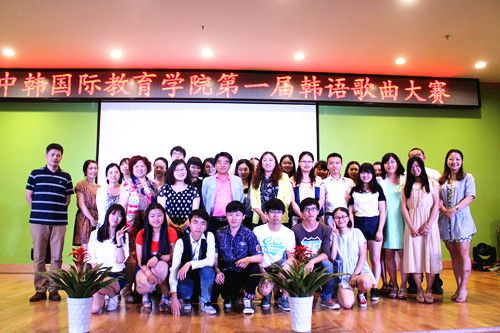 (院新闻中心记者 刘佳瑶 编辑 翁雪柔 ) 2014年6月5日晚上七点,在一片欢呼声中我们迎来了中韩国际教育学院第一届韩语歌曲大赛复赛。大赛在文济楼201举行,中韩国际教育学院韩方院长权世振教授,院直属党支部副书记刘晓燕老师,院团总支书记鲁雯老师,学生办公室杨孛老师、李涛老师作为比赛嘉宾出席了本次比赛。