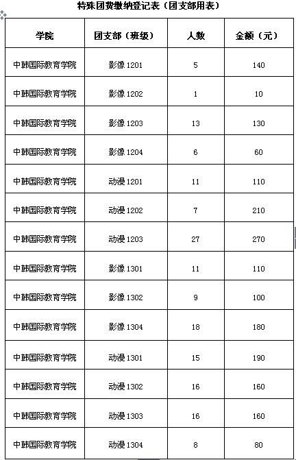 响应校团委的号召,学院在2014年6月下旬组织开展了“情系梁河•中南筑梦”系列主题教育实践活动。活动中组织团员们缴纳了“特殊团费”。本次活动全院一共14个班级共缴纳“特殊团费”共计1910元人民币,该款项已经全部上缴校团委。