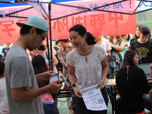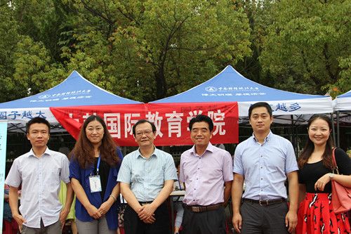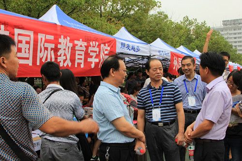 11级学生及13级学生等主要工作人员在前台为新生办理报到、领取信封、领资料等手续。他们始终面带微笑,认认真真地为他们办理具体手续。张敏主任和李涛老师也热情接待前来咨询的新生家长,详细解答家长的疑问。上午十点,中韩国际教育学院中方院长兼直属党支部书记祝振炎,韩方院长权世振,中方副院长吴瑜、直属党支部副书记刘晓燕,来到迎新现场,看望迎新工作人员,并与新生和家长亲切交流。