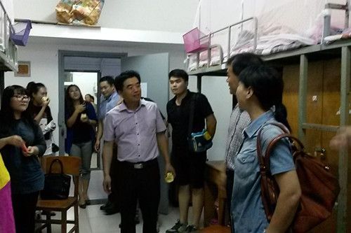 在学生宿舍,院领导亲切地询问了每位新生的基本情况,对新生的到来表示欢迎,并悉心询问新生是否适应武汉和学校的生活环境,生活用品是否购置妥当等问题。院领导和在场的新生家长沟通交流,耐心回答了家长们的提问,还特别提醒新生要注意安全,对于进入宿舍推销的社会闲杂人员由其要注意防范,必要时可拨打校园报警电话,以防人身和财产安全受到损失。