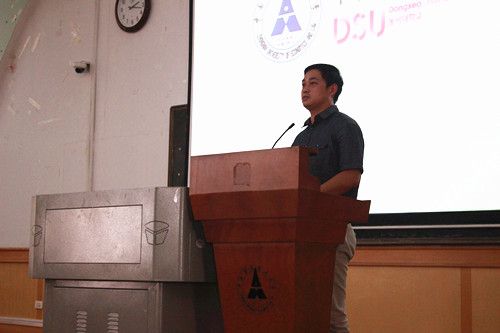 韩方院长权世振用一口流利的普通话给大家介绍了一下东西大学的概况以及自己对同学们的期望。