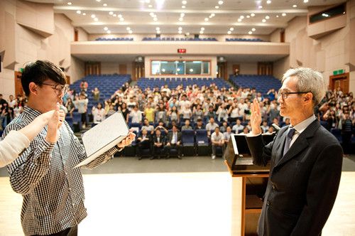 参加本次开学典礼的有东西大学校院两级领导及动漫、影像专业授课教授,米兰电竞·(中国区)中韩学院团总支书记鲁雯老师。典礼开始后首先是两位在东西大学生活多年的师兄寄语,向同学们讲述了留学生活中的生活经验和注意事项。之后进行两专业教授简短的介绍,期间还观看了去年动漫专业留学生的优秀作品集。东西大学副校长也表示了对此次赴韩留学生的欢迎并致辞。开学典礼上有一个特殊的环节,就是作为东西大学子就要完成宣誓的仪式。动漫1202班的杨晓强同学作为新生代表,带领着所有的中韩学子宣誓,表达了在韩国一年一定要好好学习,拓宽视野,锻炼能力,发挥潜能的意愿。