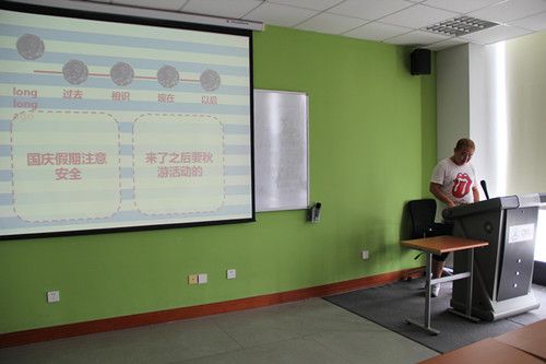 首先,班长通过PPT展示来跟大家说明十一放假应注意的安全事项,主要包括旅游时应注意的事项,在家应注意的事项等等;同时大家一起回顾了我们班上学期做过的一些活动,并展望未来,希望这个学期也能有丰富的班级活动能充实大家的课外生活,增强班级的凝聚力。班长在说完假期应该注意的安全问题后也将假期回校后的活动告知了大家,同学们也对假期回校后将举行的秋游活动充满了兴趣,并保证将安全的度过这次的国庆长假。