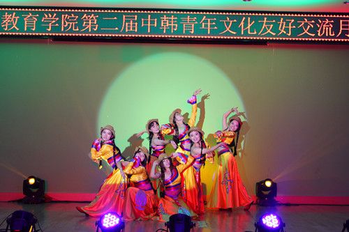 演出一开始就赢得了热烈掌声,活泼、劲爆的开场热舞瞬间点燃了现场热闹的氛围。《给力青春》将中韩学子对青春的热情表现得淋漓尽致。晚会就此拉开了序幕。热火与安宁相交织映衬出不同的精彩,无论是悠扬婉转的外文歌曲联唱,还是深情款款的诗歌朗诵,都不由令在场观众深深陶醉、久久回味。
