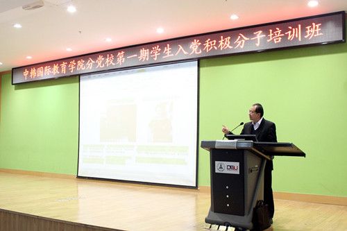 殷修林部长为中韩国际教育学院分党校授课