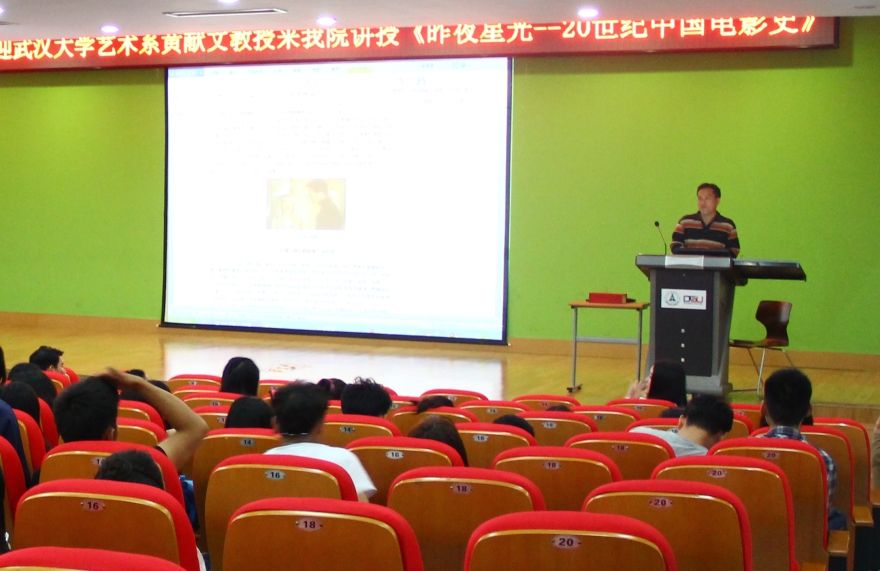 (学生记者:姜歆钰 编辑:曹馨月 摄影:杨启帆 )2015年5月8日晚,武汉大学艺术系的黄献文教授做客中韩国际教育学院,和同学们分享了《昨夜星光—20世纪中国电影史》的创作过程和体会。我院伍婷老师主持了本次讲座。