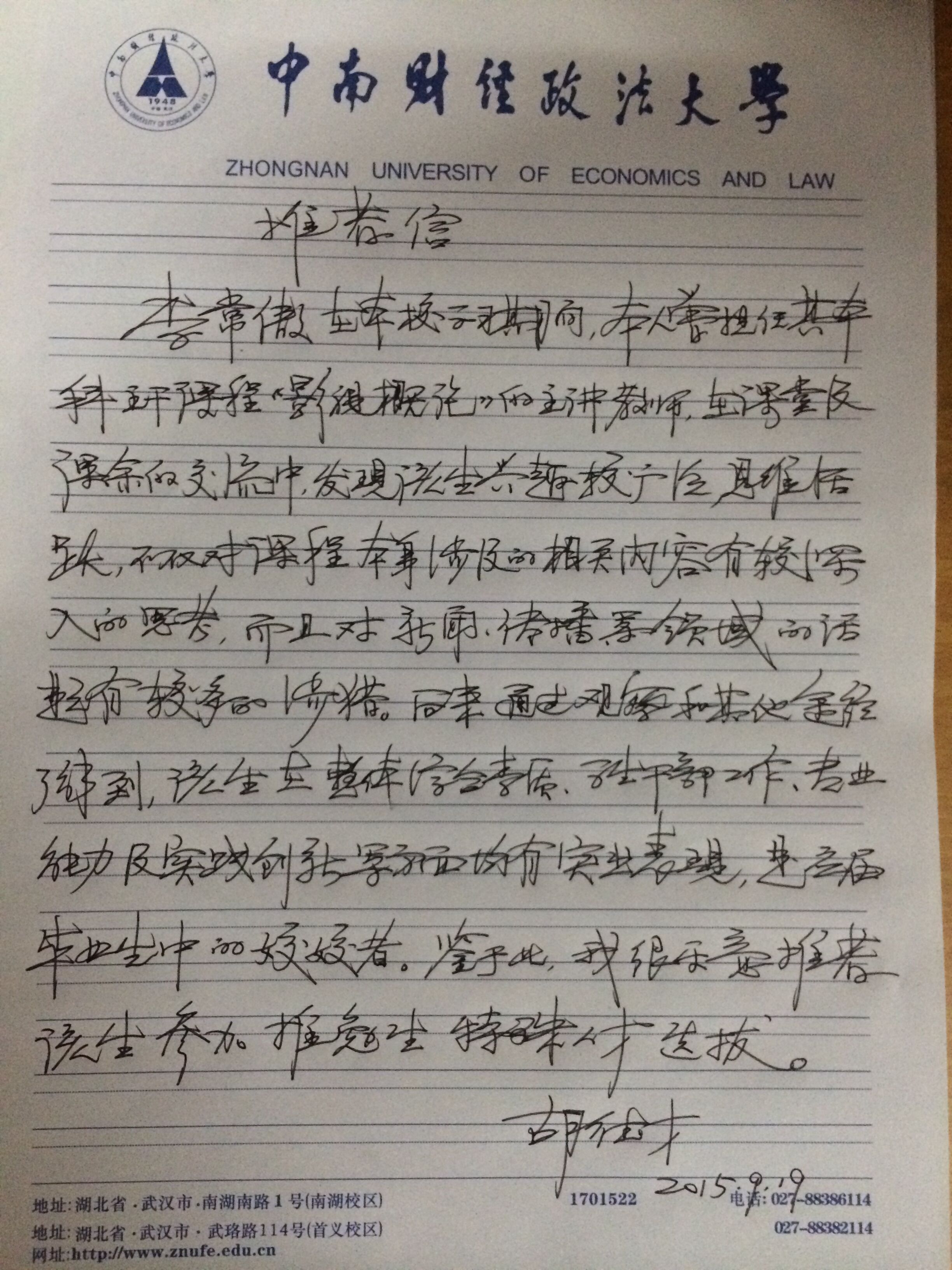 关于中韩国际教育学院推荐优秀2016届本科毕业生