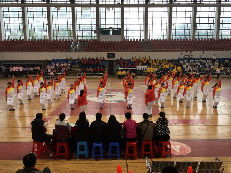 当天下午武汉天气显得有些湿冷,但连绵不断的雨并没有浇灭中韩新媒体学院的参赛者们以及观众们的热情,我院参赛者们穿着红白相间的运动服,青春而富有朝气,随着广播操音乐做着整齐划一的动作伸臂,扩胸、转体、踢腿、弯腰,动作娴熟到位,张弛有度,充盈着刚健之美,飞扬着动人的神采。颁奖典礼结束后,记者特地采访了当日下午参加广播操比赛的葛亦萱同学,葛亦萱同学表示:“其实我们一起练习的次数不多,但是每一次都很有效率,大家为了这次的比赛都很拼。”