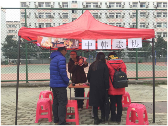 (通讯员:赵颖 学生记者:刘云琦)为加强中韩文化交流以及我校莘莘学子对于中韩文化的了解,11月27日,中韩新媒体学院志愿者协会在我校十食堂前举办了以“中韩文化交流”为主题的特色志愿活动,我校师生积极参与了此次活动。