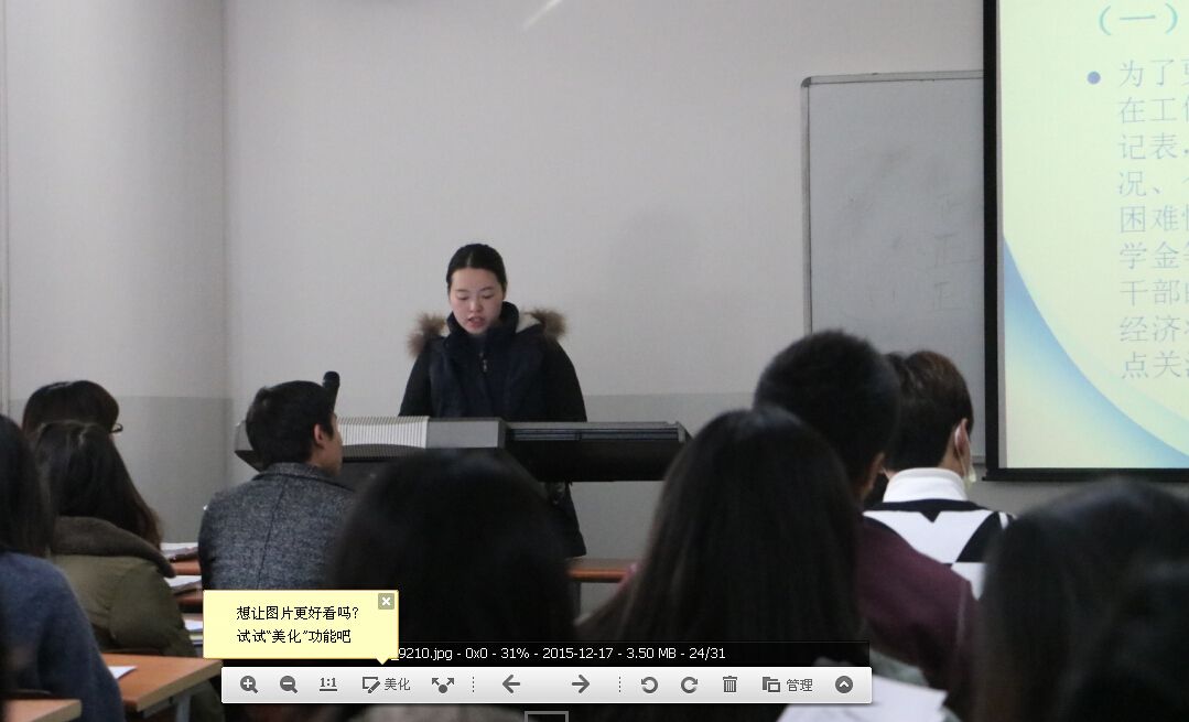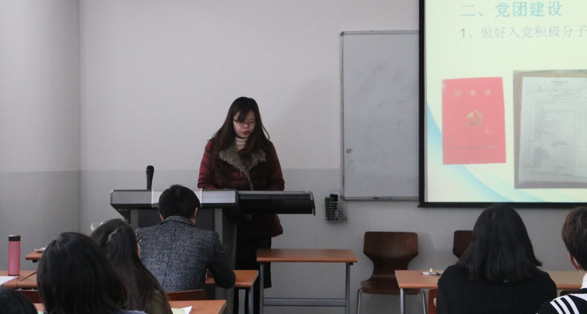 会上,学院4名辅导员通过PPT展示的形式,演讲了2015年工作总结,回顾了2015年在学生工作方面开展的思想政治教育、党团建设、学业指导、日常管理、职业规划与就业指导、心理健康教育和理论研究等方面开展的工作,总结了工作成绩与不足,为下一年的工作开展提出了意见和建议。