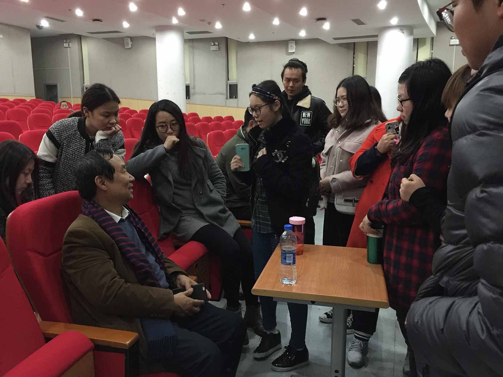 讲座最后,陈教授嘱咐学生们一定要善于发挥团队的力量,有效利用专业教师和学院资源,有机融合协同作战,并预祝电影学学子在第八届大广赛取得好成绩。学生们在讲座结束后意犹未尽,积极向陈教授交流了自己的疑惑与想法,并表示听完讲座后有饱满的信心参加大赛。