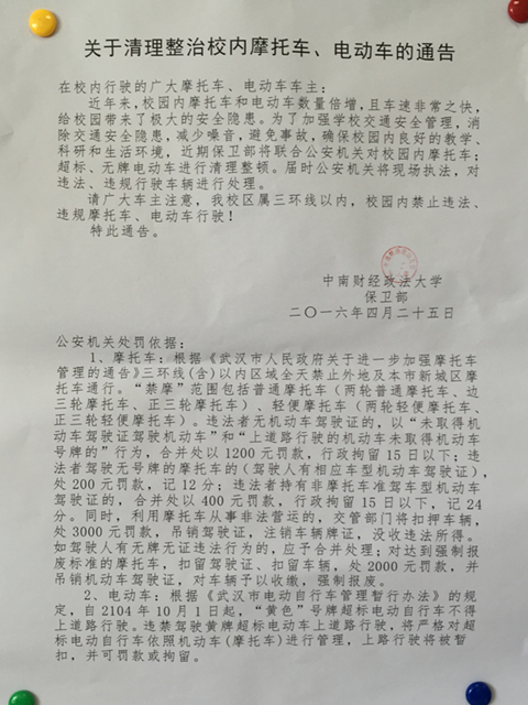 请广大车主注意,我校区属三环以内,校园内禁止违法、违规摩托车、电动车行驶!