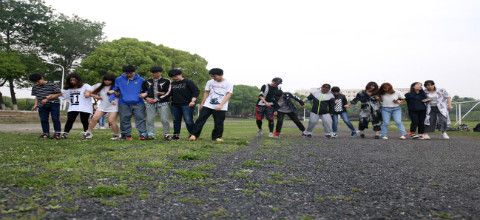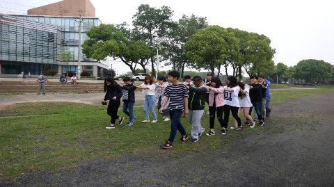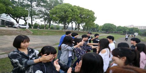 “户外板块:小小运动会”环节由三个小游戏构成:十人十一足、时代列车跑、蒙眼识人。这三个小游戏虽然简单,但其目的不在输赢而在培养班级同学之间的信任度,提升熟悉度。从这个角度来看,每一个参加运动会的成员都是胜者。