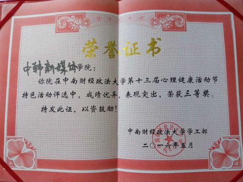 我院荣获校第十三届心理健康活动节特色活动评选三等奖