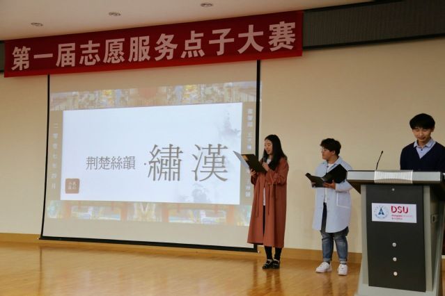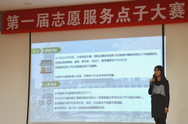 (新闻中心讯通讯员:赵颖孙珂珂撰稿:霍绮萱摄影:赵蓉等)2017年4月6日下午,由中韩新媒体学院志愿者协会与文澜学院志愿者协会共同举办的第一届志愿者服务点子大赛决赛答辩在文济楼201报告厅举行,担任本次点子大赛决赛评委的老师有中韩新媒体学院直属党支部副书记刘晓燕、校团委副书记范献龙、校团委老师林晶晶、文澜学院院长助理高楠、文澜学院团总支书记余利、新闻学院团委书记张向飞、金融学院团委老师赵达骋、中韩新媒体学院团总支书记赵颖以及各兄弟学院志愿者协会主席。