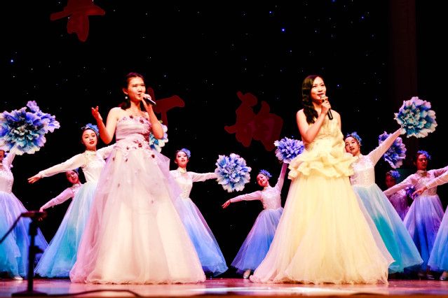 此次比赛的主题是“喜迎十九大”,每个学院都围绕主题展现了各具特色的民族风情,为台下的观众们带来了一场完美的视听体验。我院艺术团第11个出场,由毛艺蓉、叶徐诗萌演唱歌曲《春天的芭蕾》,艺术团其他成员伴舞。这是一首极具表现力的歌,它以诗意的表达方式谱写华美旋律,把春天的活力与欢快表现得淋漓尽致。“第一我们是想紧扣主题,喜迎十九大,春天给人朝气蓬勃很有活力的感觉,所以感觉和我们的主题比较切合。其次我们的歌手对这首歌也都比较熟悉,能够比较好的驾驭这首歌。所以最后就商定选用春天的芭蕾。”学生会副主席袁欣涛介绍到,尽管此时已是深秋,但十九大的胜利召开就如同春天一样,为我国人民带来新的活力。毛艺蓉、叶徐诗萌两位同学饱含感情的歌声伴上伴舞成员们神形兼备、韵味十足的舞蹈也让这样的喜悦深入到在场每一位观众的心底。