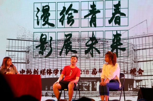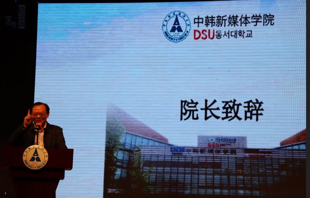 (通讯稿黄祯辉丁兰张潇月)2018年4月28日晚七点,中韩新媒体学院 “漫绘青春 影展未来”2018届毕业生送别晚会在校艺体中心顺利举行。到场的领导老师有:中韩新媒体学院直属党总支书记兼中方院长祝振炎,中韩新媒体学院韩方院长金彦河,直属党总支副书记刘晓燕,中韩新媒体学院韩方副院长蔡一镇等。