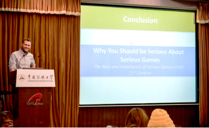 题为《正经点,这是严肃游戏——严肃游戏在21世纪扮演的角色及其重要性》的讲座在动画与数字艺术学院学术报告厅展开。美国东北大学游戏设计专业副教授Casper Hartevel与观众分享了不同阶段、不同时代下的严肃游戏,结合自己的创作经验,从人类行为和文化现象的观看角度对严肃游戏的现实作用、社会意义进行了探讨,并指出严肃游戏的重要目的在于“生产知识”,21世纪数字时代的严肃游戏的意义主要体现在“教育”上。