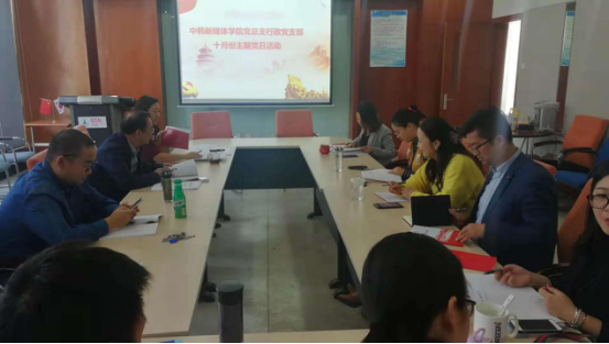 新闻网讯(通讯员毛承东)2018年10月30日下午,中韩新媒体学院行政党支部在文济楼四楼会议室开展了十月份“支部主题党日”活动。支部全体成员参加了学习讨论,活动由行政支部书记施芸芸主持。