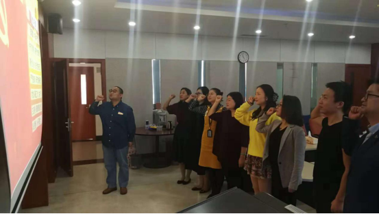 最后,主题党日活动开展现场交纳党费、重温入党誓词等规定内容。
