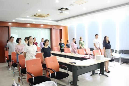 大会伊始,学院全体教职工党员起立,齐唱中华人民共和国国歌。
