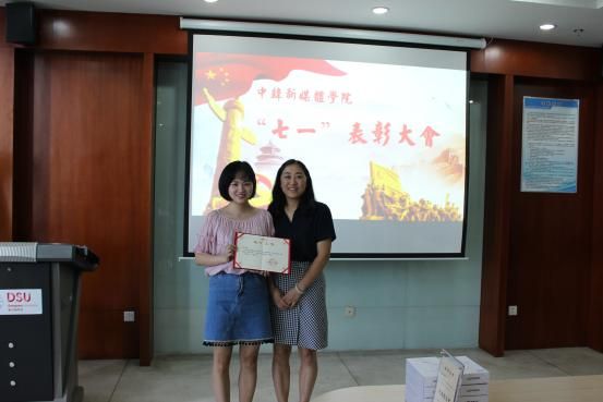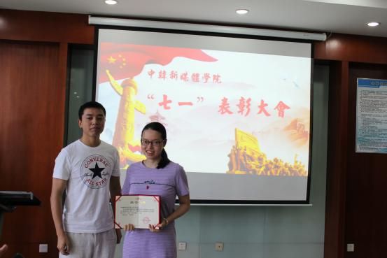 大会第三项,党总支副书记刘晓燕同志宣读了中韩新媒体学院2018年度“七一”表彰决定: