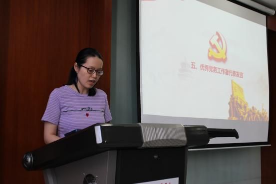 优秀党务工作者代表畅雅莉老师发言时表示,作为一名党务工作者必须要做到三点:一是严于律己,树立党务工作者的形象;二是虚功实做,以务实之心做好党务工作;三是抓住灵魂,做好学生的教育引导工作。我们要通过发挥党支部的战斗堡垒作用,发挥党员的先锋模范作用,完成好“立德树人”的根本任务。