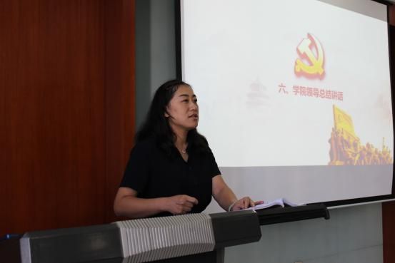 学院党总支副书记刘晓燕最后做总结发言,她首先代表学院党总支对获得表彰的单位和个人表示了热烈的祝贺,对一年以来在本职岗位上默默奉献的基层党员表示衷心的感谢和节日的问候。刘晓燕强调,全体党员要在传承发扬中,增强党员的责任感和使命感;要在干事创业中,争做忠诚干净担当的共产党人;要在聚力攻坚中,发挥各级党组织的坚强堡垒和核心作用。刘晓燕号召全体党员不忘初心,继续前进,为书写好学院教育“奋进之笔”而努力奋斗。