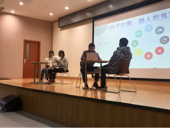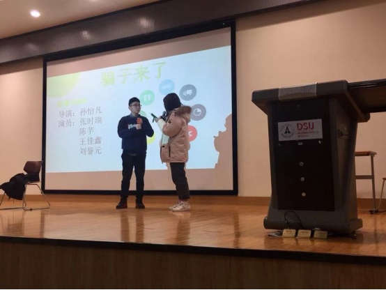 接下来,电影学的各个班级都组织表演了富有趣味性的节目,在为同学们带来欢乐的同时也将“识别诈骗伎俩,提高防范意识”地理念贯穿其中,寓教于乐。影像1801班带来的小品《骗子的嘴,骗人的鬼》着重关注时下高校中频发的“网络刷单”诈骗,将骗子的伎俩进行现场再现,提醒同学们“兼职需谨慎,防骗记心间”;影像1804班则通过小品《骗子来了》,将骗子的心境进行了精彩的演绎,揭露骗子的可恶嘴脸,以起到警示同学的作用;最后影像1803班三位女同学委大家带来改编歌曲《我们一起防诈骗》,在轻松愉快的气氛中将防骗小贴士传达给在场的同学们。