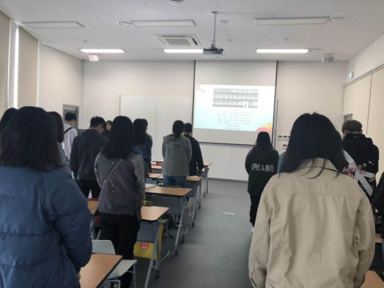 对于身处韩国的中韩新媒体学院2017级同学们而言,尽管无法亲自前往烈士陵园瞻仰祭扫,但仍以开展主题学习会的形式来追忆英雄事迹,向为国家民族奋斗牺牲的英烈致以最崇高的敬意。