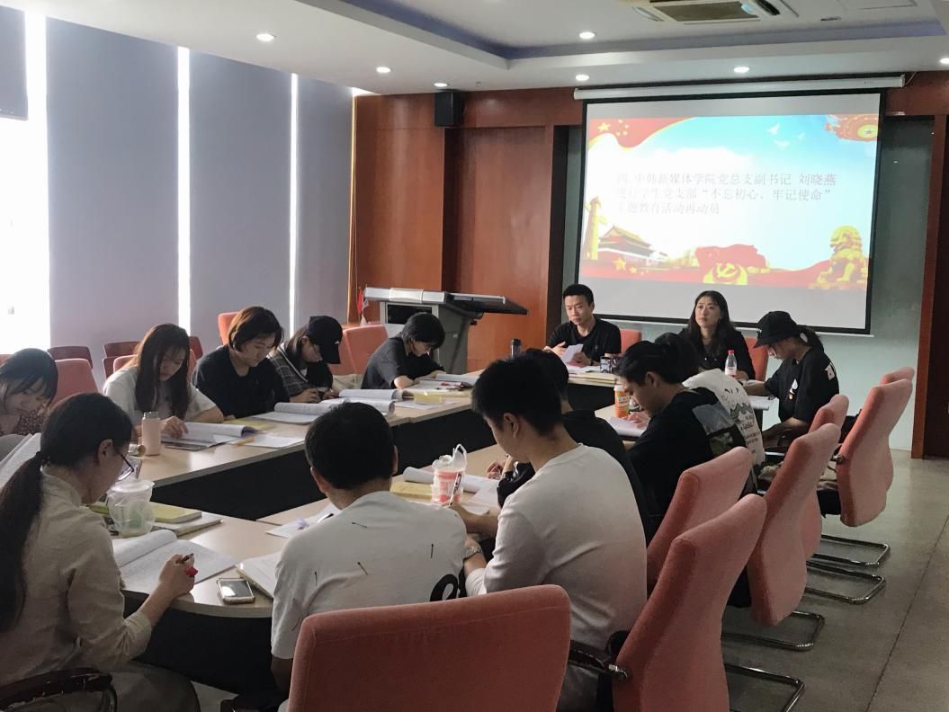 李涛宣读了《中韩新媒体学院关于‘“不忘初心、牢记使命”’主题教育的工作方案》,重点强调学生党员也要严格按照方案要求,查找党员意识、担当作为、服务群众、遵守纪律、作用发挥等方面的差距和不足。