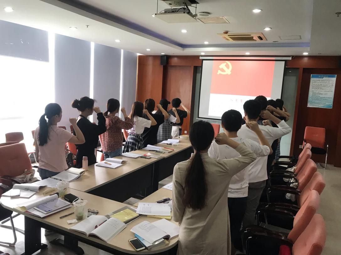 全体同志面向党旗宣誓,重温入党誓词,并交纳党费。由彭铖诵读《中国共产党章程》中第一章党员,包括党员权利和义务等内容,开始了9月主题党日活动的学习。