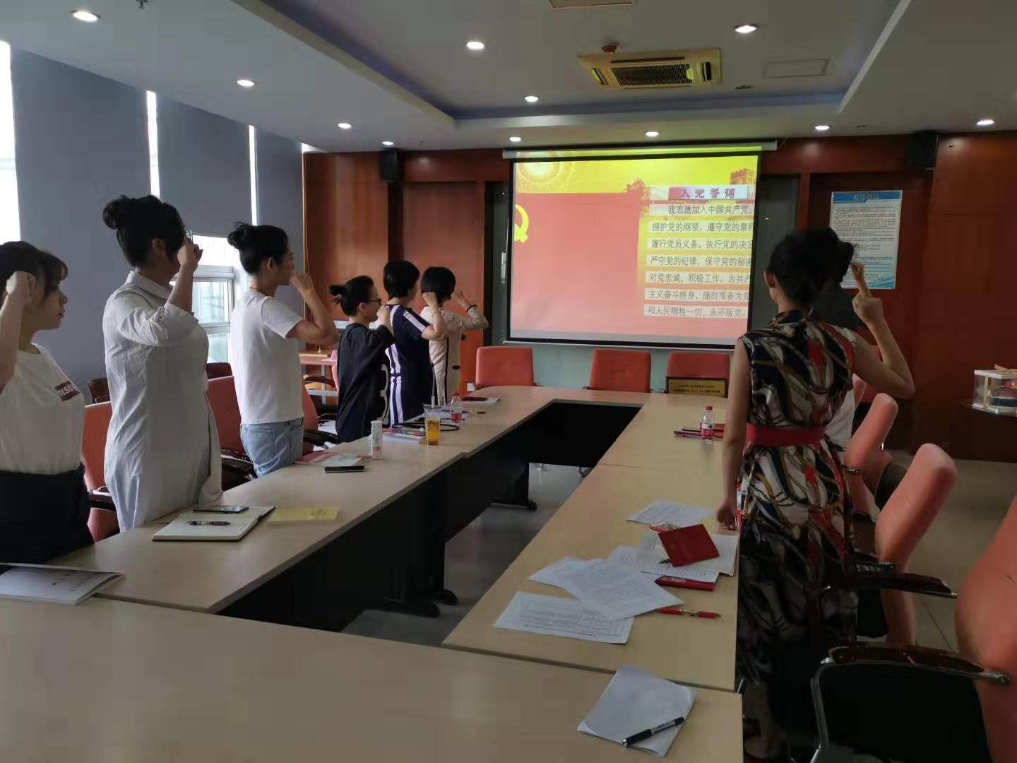 最后,主题党日活动开展现场交纳党费、重温入党誓词、诵读党章等规定内容。