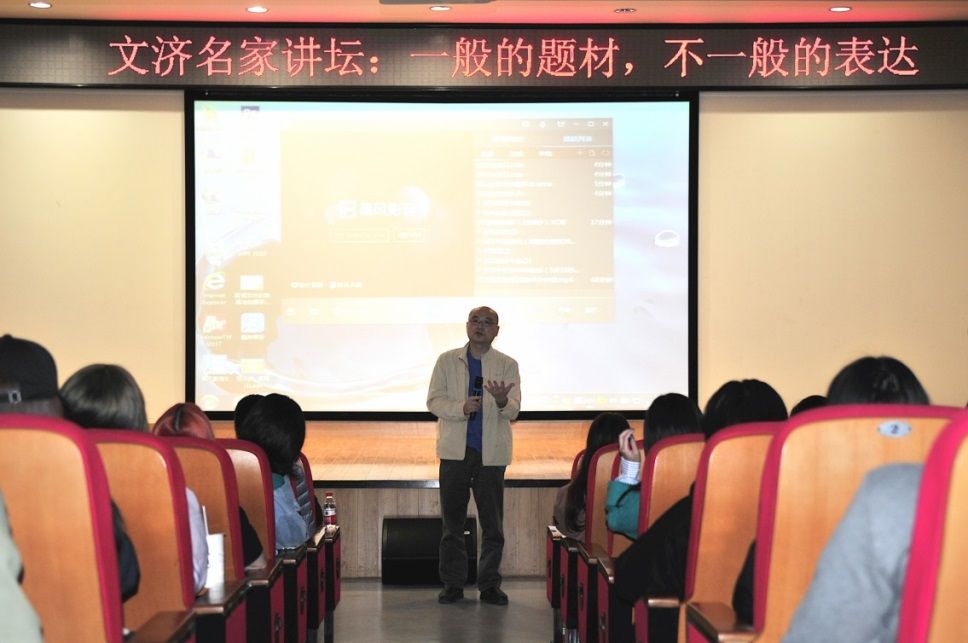校党委副书记、纪委书记侯振发向张以庆导演颁发了客座教授聘书。接下来,张导以歌曲与戏曲的结合版《送孟浩然之广陵》作为开篇,他在表达对这首歌曲的赞美的同时,也告诉同学们,在原本的基础上创新可以打开一扇新的大门,他以“一般的题材,不一般的表达”为主题呼吁大家打开视野,以更加新颖的方式去表现自己的想法。