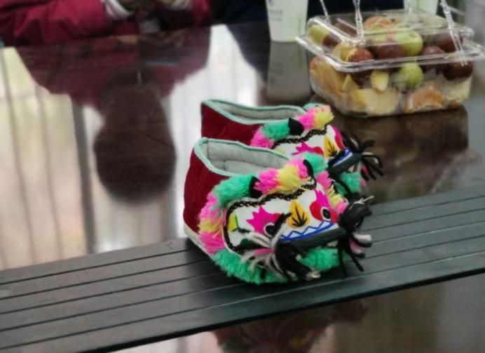 郭雪梅老师为大家展示的虎头鞋。虎头鞋寓意着吉祥如意、福气冲天,穿了虎头鞋的孩子将来眼明、耳灵。穿上虎头鞋可以避邪保平安,护佑孩子健康成长。