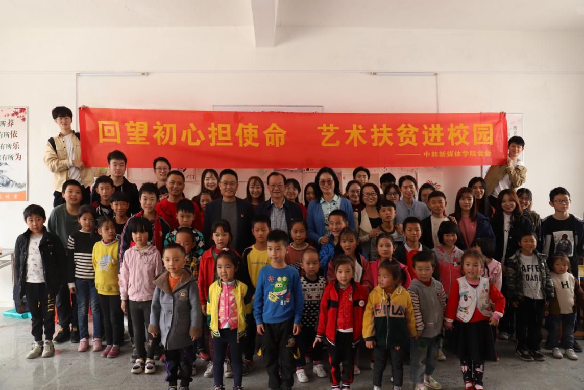 本报讯(学生记者 郑冰婕)为深入学习贯彻习近平总书记关于扶贫工作重要论述精神,响应学校2019年“扶贫日”活动号召,秉持“扶贫先扶志,扶贫先扶智”的理念,11月16日,由中韩新媒体学院党委书记、院长祝振炎带队,学院教职工党员代表、学生入党积极分子一行35人赴通城县麦市镇红石村开展“回望初心、艺术扶贫”志愿服务活动。