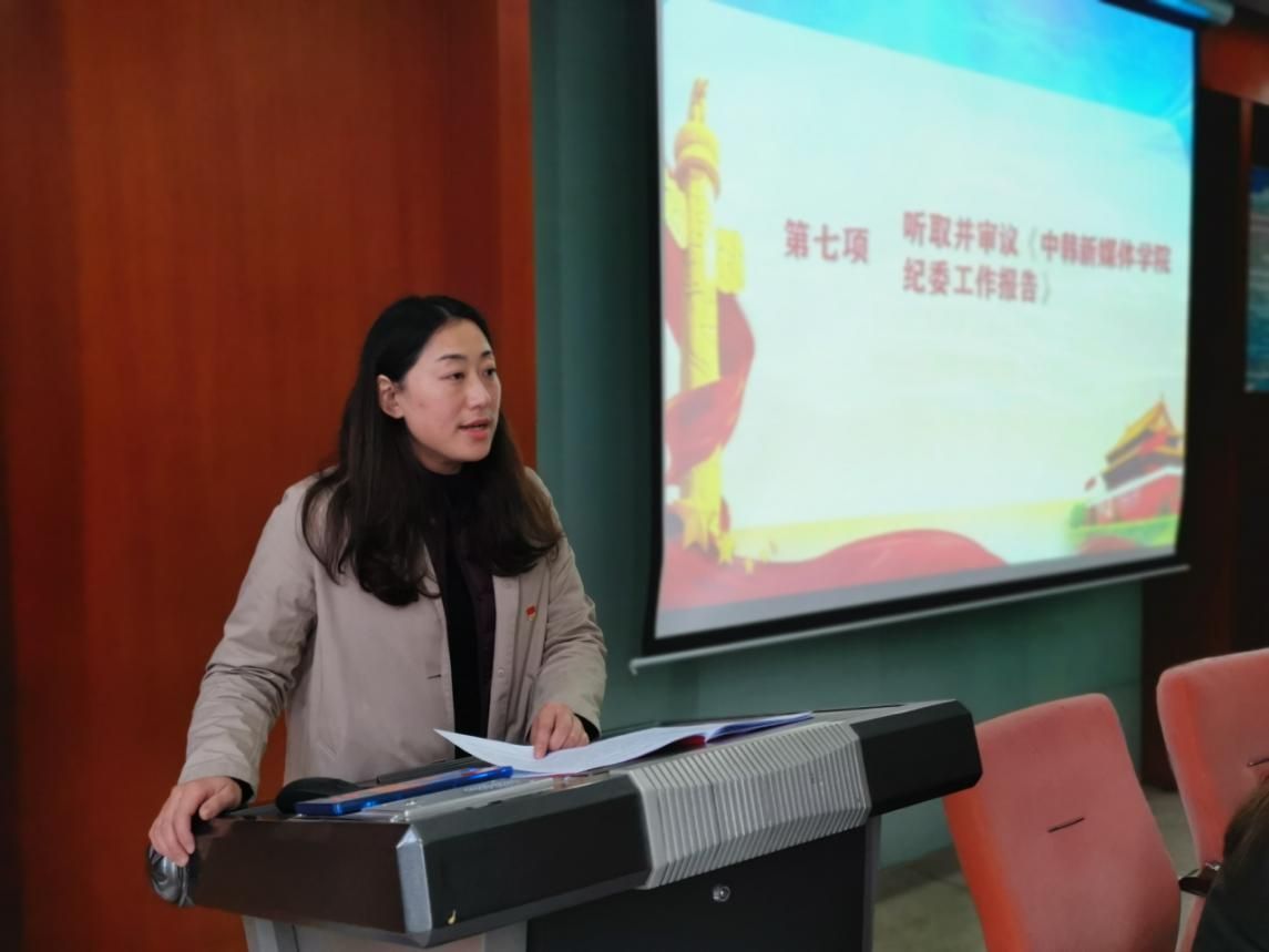 大会分支部讨论审议了《中韩新媒体学院党委工作报告》和《中韩新媒体学院纪委工作报告》,并在大会上表决通过。