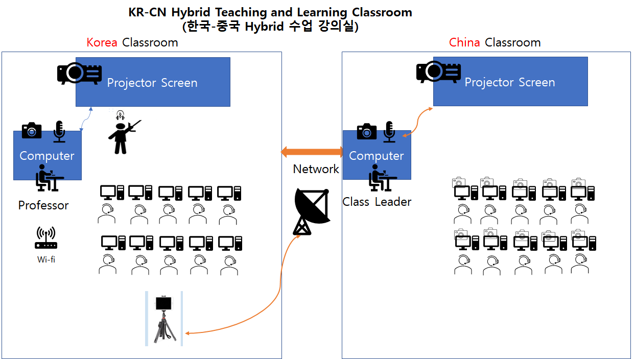 Hybrid课程: 是将线下课堂通过线上手段同时输出,以供无法赴韩学生学习的授课方式