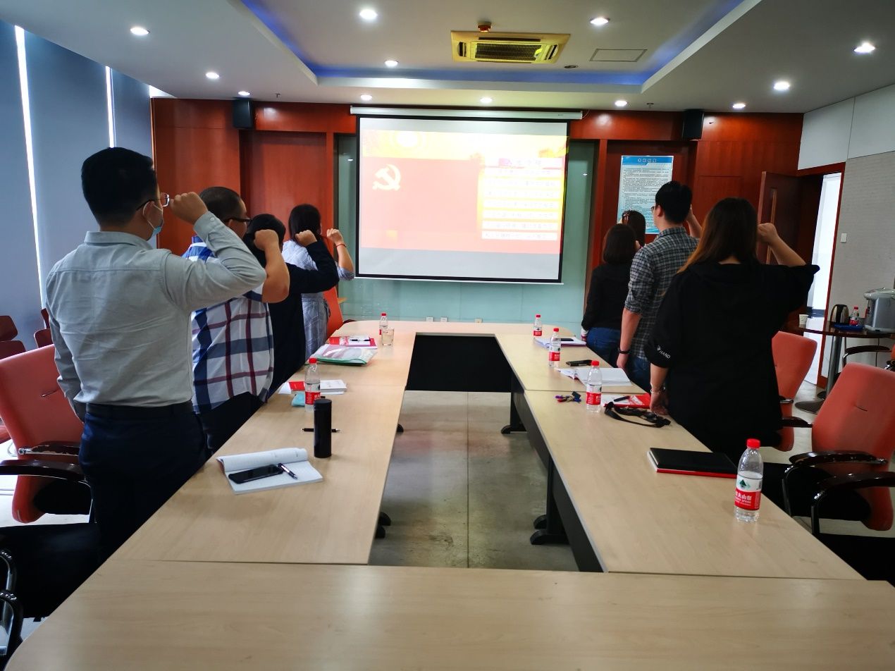 活动最后,党员们面对党旗庄严重温入党誓词,按期交纳了党费。