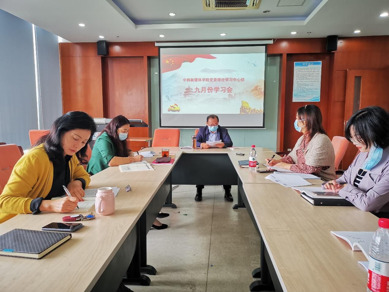 (通讯员 毛承东)9月24日上午,中韩新媒体学院党委理论学习中心组在文济楼411召开了专题学习会,全体学院党委委员参加了会议。学习会由学院院长、党委书记祝振炎主持。