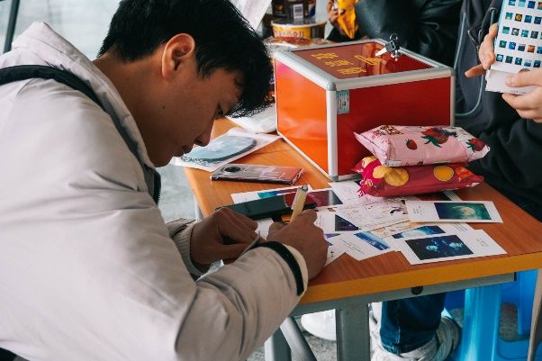 活动正式开始后,参与的同学们在贺卡上写下自己的心愿以及对女生的祝福,并换取来自陌生同学的祝福卡。这些祝福不仅是来自大家内心深处的美好祝愿,更是大家对未来的憧憬。