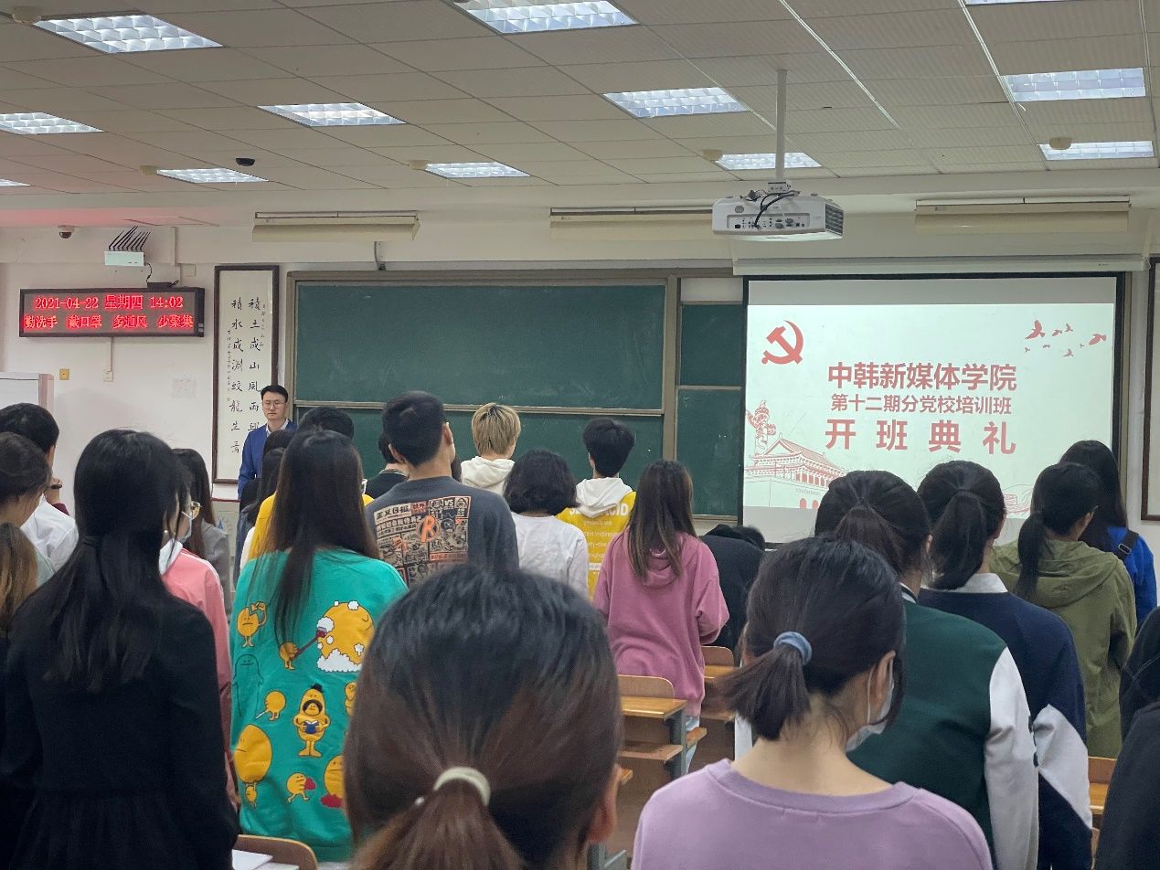 新闻网讯(通讯员 毛承东)中韩新媒体学院第十二期分党校培训班开班典礼,于4月22日下午14时在文泰楼201 如期举行。学院党委副书记刘晓燕、全体教生党员、各年级入党积极分子和党员发展对象出席此次典礼。仪式由分党校教务办公室主任毛承东主持。