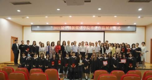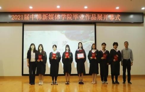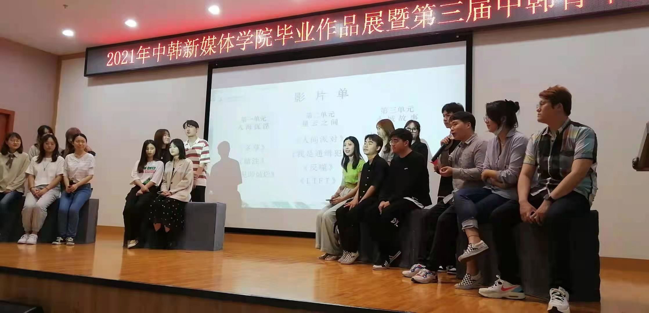 ( 通讯员:袁品芳、吕叶菲)5月8日上午,中韩新媒体学院2021届优秀毕业作品展既第三届青年影展开幕式在文济楼201举行,这次影展以“城市的回响”为主题。校党委副书记、纪委书记侯振发,学生工作部部长兼人武部部长余小朋,就业指导中心主任温习,教务部副部长邓松,中韩新媒体学院院长、党委书记祝振炎、党委副书记刘晓燕,副院长董玉芝、韩方副院长崔哲荣,以及中韩双方全体教师和2021届毕业生出席,开幕式由中韩新媒体学院教师马志远主持。